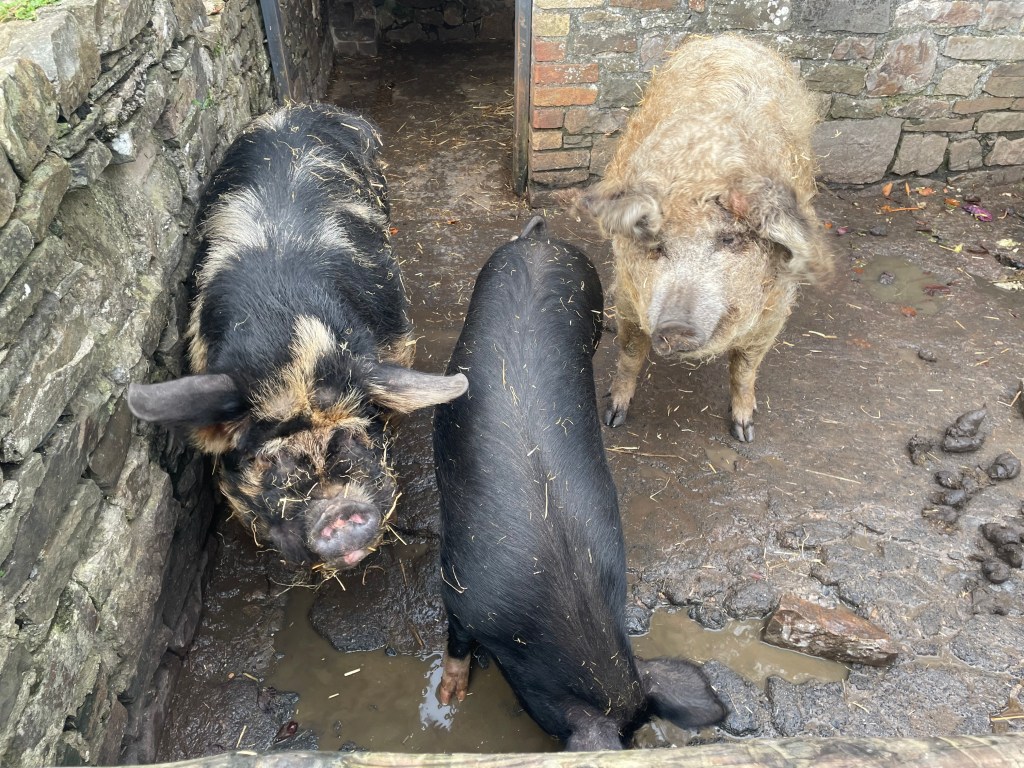 We left Bristol under cover of darkness and joined the throng on the M4 which flowed well until we reached near Cardiff where Google informed us there was an ‘eight minute delay, but you are still on the fastest route.’ Ha! And so we arrived last and later than we’d estimated and hadn’t seen the message from Jo asking if we were alright. We were greeted with hot food and friendly faces and immediately had to go through introductions. I knew most people at the table but there were a couple of new faces. Once we retired to the sitting room and Jo and Roz introduced the weekend and workshop aspects and beer flowed I felt a bit more relaxed. Glynhir estate is a sprawl of many buildings and outbuildings, barns and pig stys (complete with woolly pigs), and a pack of geese, ducks and peacocks.